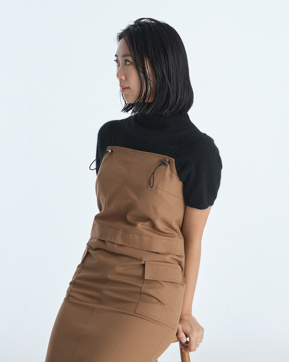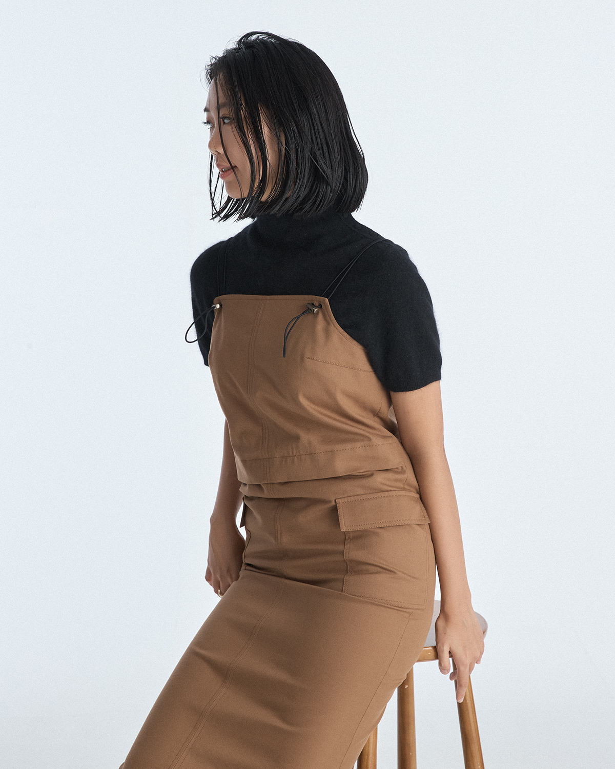 About Overall Strap Dress